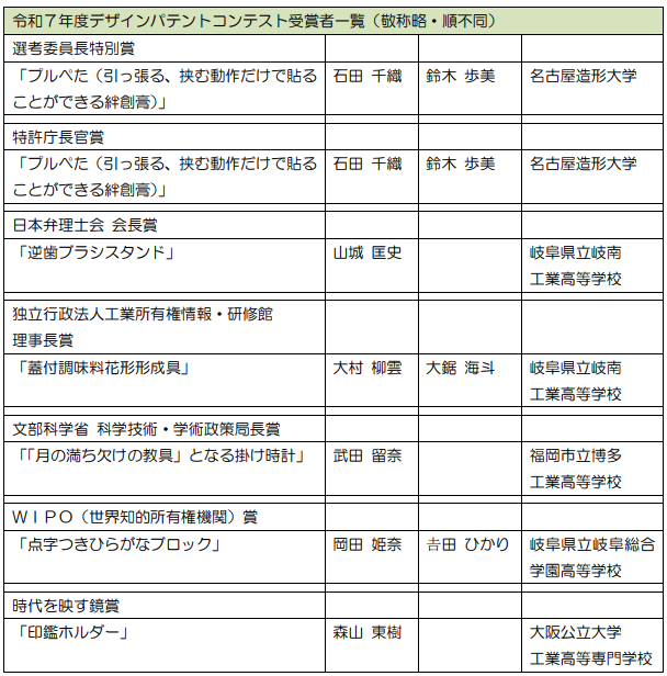 未来を担う学生の皆さんが自ら考えたアイデアやデザインに注目!~ひらめきは、特許権に。デザインは、意匠権に。~
