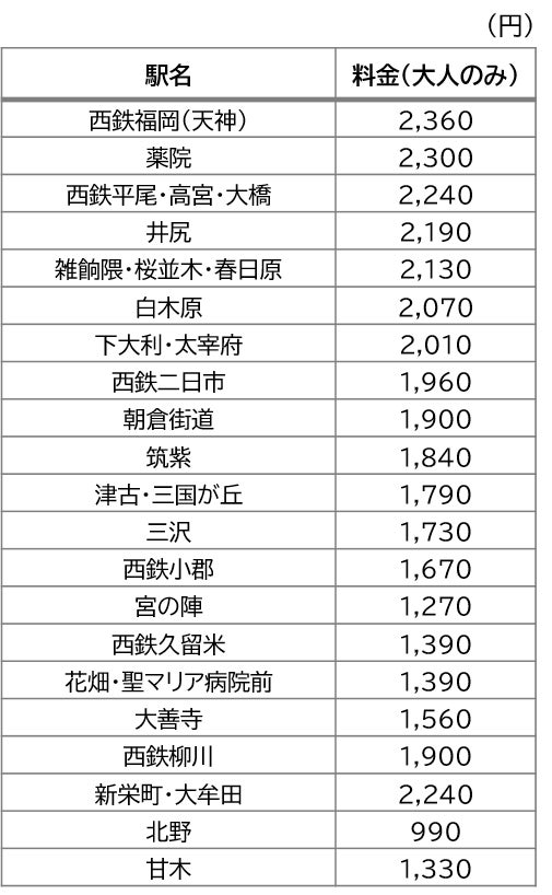 ■ 販売駅・販売金額(大人のみ)