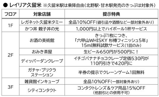 当きっぷ販売期間中は、西鉄久留米駅の商業施設「レイリア久留米」内の「レガネット久留米タミー」(営業時間7:30~22:00)でも、一部の参加酒蔵のお酒を販売します(無くなり次第販売終了)。お帰りの際にお立ち寄りください。