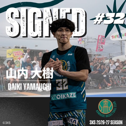 KAWAGOE BCでは、山内大樹選手との2026-27シーズンにおいて選手契約継続が決定しましたのでお知らせ致します。