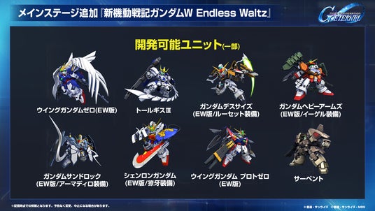 4月1日には『機動戦士ガンダム00』の開発経路図へ新たなユニットが追加、『新機動戦記ガンダムW Endless Waltz』の開発経路図が追加予定となります。