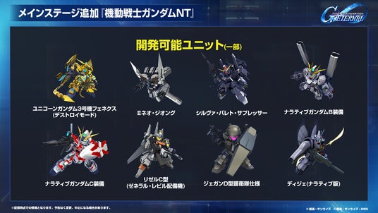 また、4月末から5月初旬ごろには『機動戦士ガンダムNT[ナラティブ]』も新たなメインステージとして追加予定です。