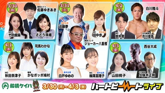 船橋ケイバでは、令和7年度第13回開催、並びに令和8年度第1回開催を3月30日(月)から4月3日(金)まで実施いたします。