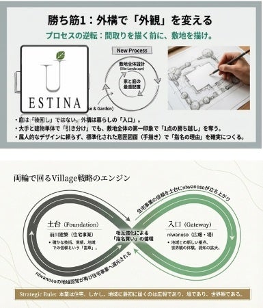 Village戦略は、工務店と地域をつなぐ「グリーン雑貨店」や「カフェ」などの拠点づくりを通じて、暮らしの豊かさを発信し、比較ではなく指名につながる関係づくりを目指す取り組みです。