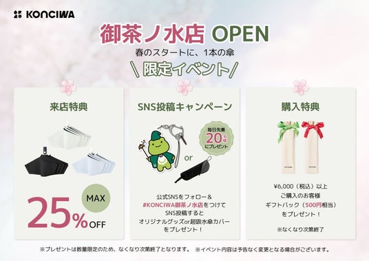 KONCIWA株式会社は、ブランド初となる直営店舗「KONCIWA 御茶ノ水店」を、2026年3月28日(土)にオープンいたします。