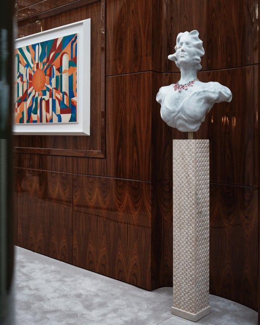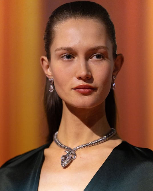 ガラディナーが開催されたヴィラ アルコナーティの演劇的な壮大さと、ショールーム会場となったヴィラ ネッキ・カンピリオのモダンな親密さの中で、ハイジュエリー、ハイエンドウォッチ、バッグ、フレグランスにわたる約650点の作品が展示されました。この特別な展示の中心には、160点以上の新作コレクション「エクレティカ」が据えられ、その中には14点のコンバーチブルな作品、50点以上のミリオネア ジュエリー、そしてコレクションの創造哲学を彫刻、絵画、建築を通して表現した9点の並外れた傑作「カポラヴォーリ(イタリア語で傑作の意)」が含まれています。