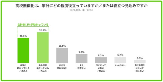 - 高校無償化が「家計に助かる(または助かる見込み)」と感じる保護者は58.3%と過半数