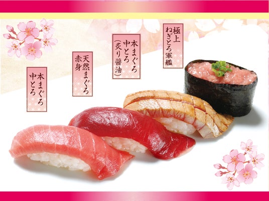 桜が満開を迎えるこの時期、春らしい旬のお寿司はいかがですか?うまい鮨勘では、回転寿司店舗・ゆとろぎ店舗、東北対面寿司店舗それぞれの業態で、この時期限定のネタを取り揃えたメニューを販売いたします。