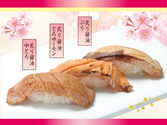 ◆炙り醤油三昧 780円(税込858円) 密かに人気の炙り醤油シリーズ!香ばしい醤油の風味がネタの旨味を引き出します。