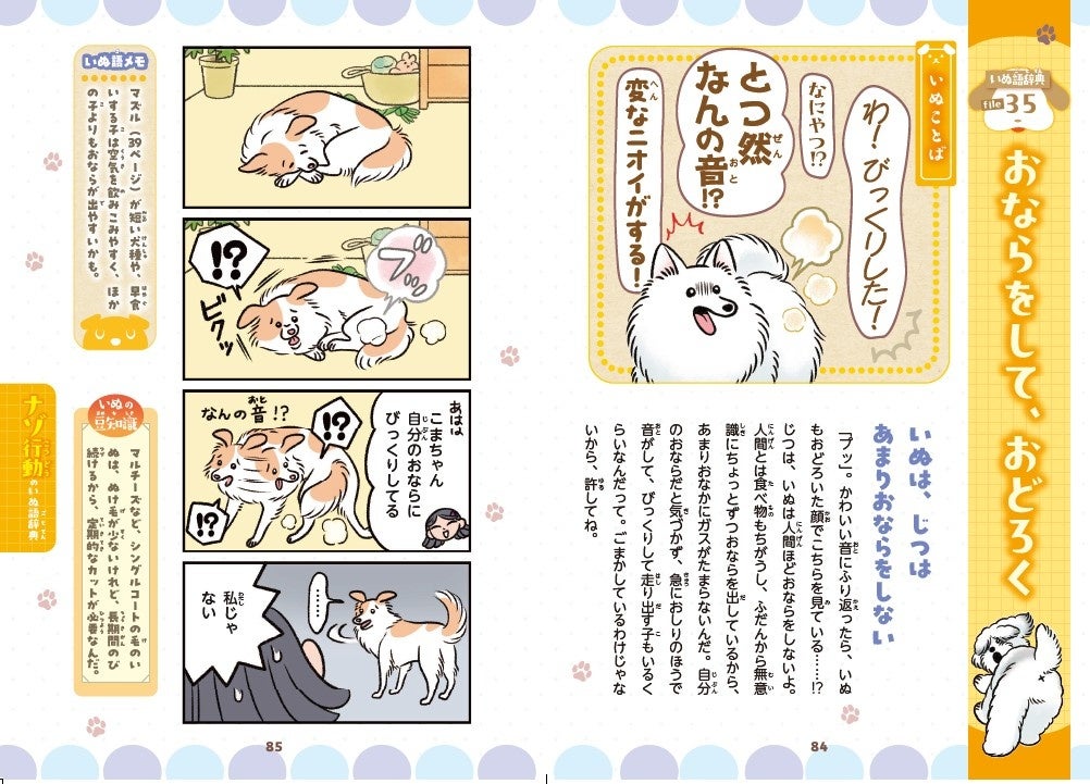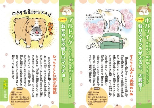 いぬの鳴き声やしぐさ、ナゾ行動から、いぬの本当の気持ちがわかる! 4コマまんがたっぷりの『いぬ語辞典』! ブルドッグはマッチョ!? 犬種別の特徴や意外な性格も紹介!