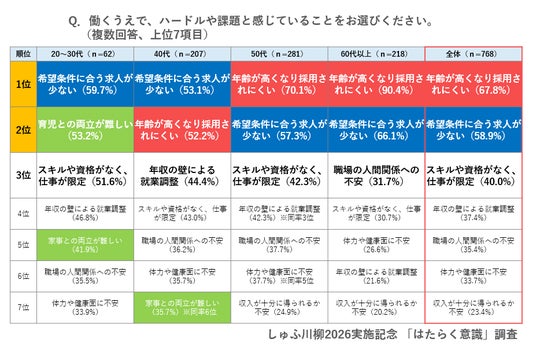 5.働く上での課題 年代で大きな差 子育て世代は両立、50代以降は「年齢による採用」が課題に