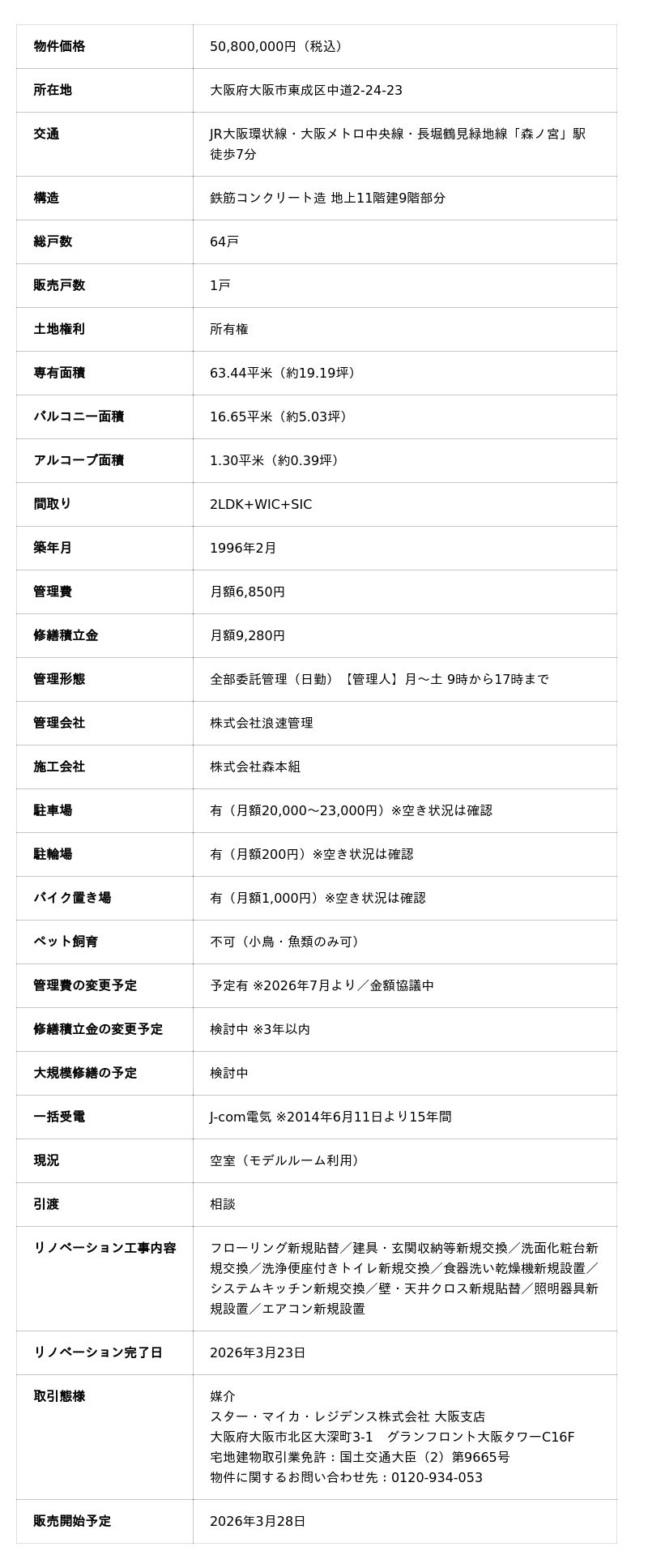 ・物件概要(2026年3月26日時点)