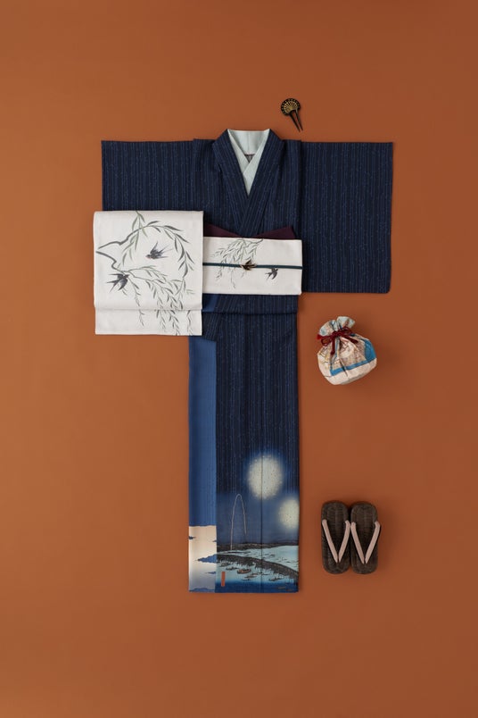 260年にわたる天下泰平の世が続いた江戸時代には、多様な文化が花開きました。そこから生まれた美意識や洒落、遊び心は、現代にも受け継がれています。東京・小石川で創業したきものやまとが、「江戸」をテーマに想像を掻き立てながら、「ゆかた」「帯」「装身具(帯留・髪飾り・履き物)」を制作。伝統と新しさを組み合わせ、着る人に「新しい価値」と「気づき」を届けるシリーズです。