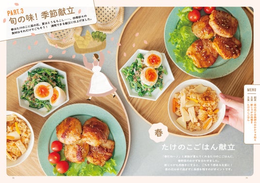 PART3では、旬の味を楽しむ季節の献立を紹介します。春はたけのこや菜の花、夏はとうもろこしなど、四季折々の食材はそれだけでごちそう。季節を感じながら楽しめる献立を提案します。