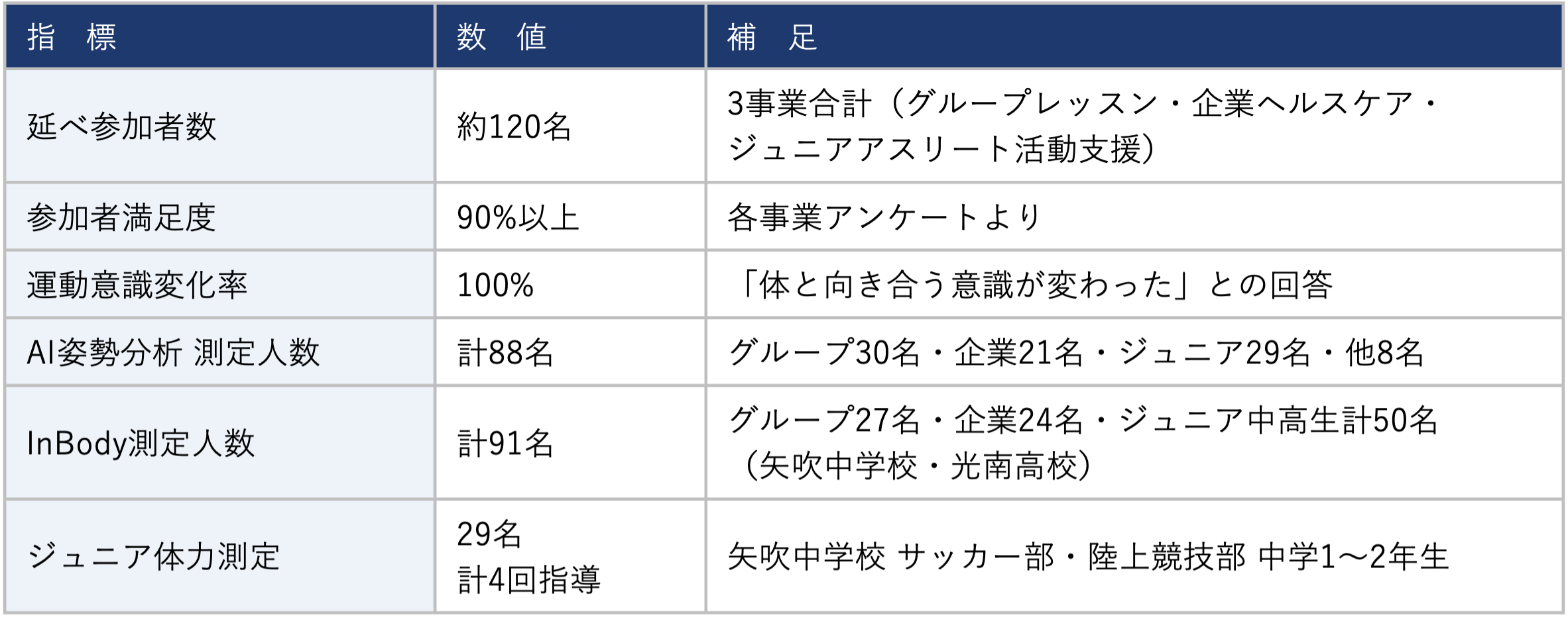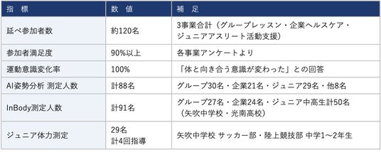 グループレッスン・企業向けヘルスケア・ジュニアアスリート活動支援の3事業の成果を公表