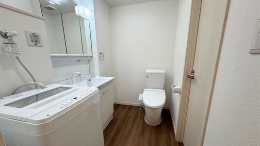 洗濯機が備え付けられている水回り。必須条件として検索されやすい独立洗面台を採用しています。