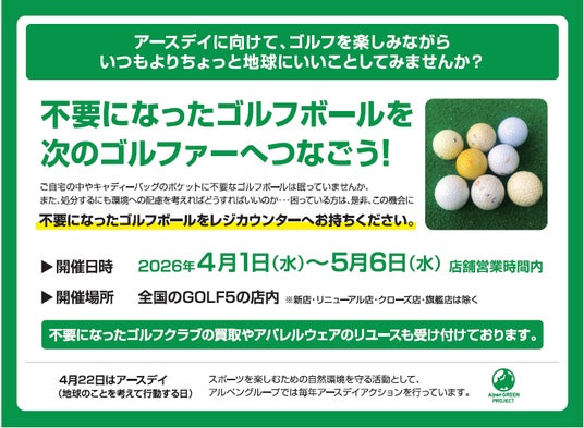 全国のゴルフ5店舗で使わなくなったゴルフボールを回収。