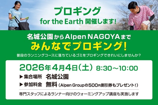 旗艦店「Alpen NAGOYA」および「Alpen FUKUOKA」を拠点に、名城公園や大濠公園といったランナーの聖地にて、ジョギングとゴミ拾いを融合させた「プロギング」を実施します。
