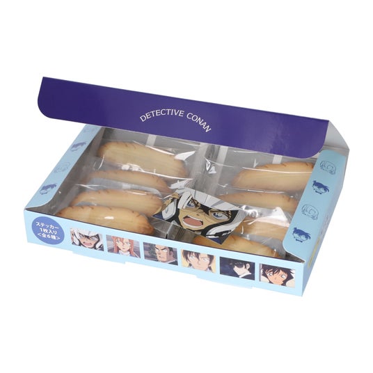 卓越したバイクテクニックから「風の女神」と称される、萩原千速をイメージした羽の形のプレーン味のクッキーです。江戸川コナン、萩原千速などのキャラクター全6種のステッカーをランダムで封入しています。