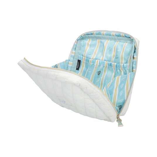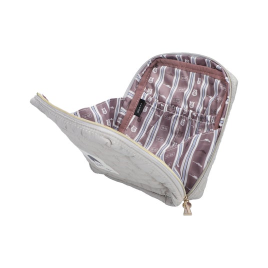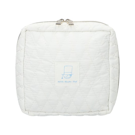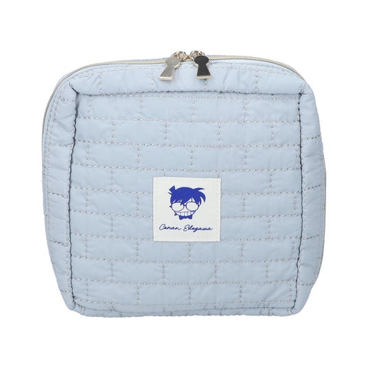 キルティング素材のスクエアポーチです。ステッチ部分は積み重なったレンガをイメージしたデザインで、怪盗キッドのみトランプを彷彿とさせるダイヤ柄になっています。内生地にもこだわり、灰原哀はアポトキシン4869、安室透はコーヒーカップ、赤井秀一は12-02のナンバープレートなど各キャラクターにまつわるモチーフをあしらいました。軽い素材は持ち運びに便利で、普段使いにおすすめです。