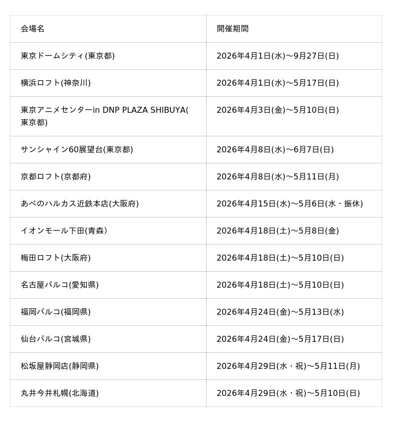 大人気作品『名探偵コナン』の物販イベント「名探偵コナンプラザ」が、今年も2026年4月1日(水)より東京ドームシティ(所在地:東京都文京区)を皮切りに、全国各地にて順次開催いたします。東京ドームシティ会場では、名探偵コナンプラザ限定イラストのお買い上げ特典をご用意するほか、4月10日(金)より公開となる劇場版『名探偵コナン ハイウェイの堕天使』のビジュアルを使用した新商品が続々と登場いたします。劇場版最新作を楽しんだ後は「名探偵コナンプラザ」にて、限定グッズのお買い物をお楽しみください。