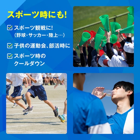 - 事前の保冷が不要で、いつでもどこでも手軽に使用できるため、スポーツやレジャー、アウトドアにぴったりです。