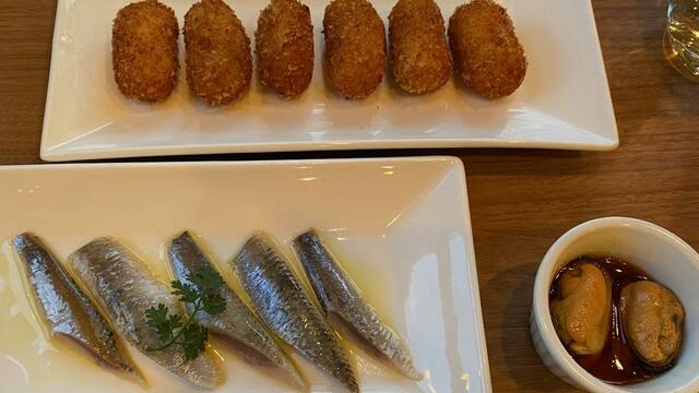 ボケロネス(いわしの酢漬け)、ムールのエスカベッシュ、生ハムの一口コロッケ、