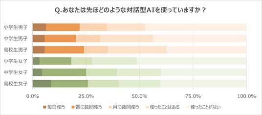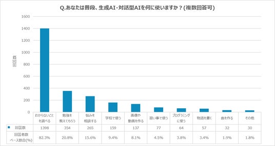 小学生は月に数回、中高生は週に数回使うという回答が4分の1を占め、勉強や悩み相談にも活用していることがわかりました。