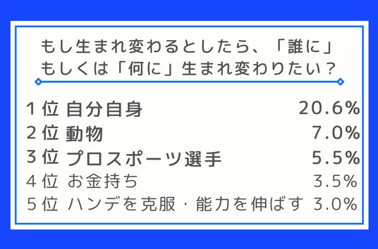 もし生まれ変わるとしたら、あなたは「誰に」もしくは「何に」生まれ変わりたいですか?