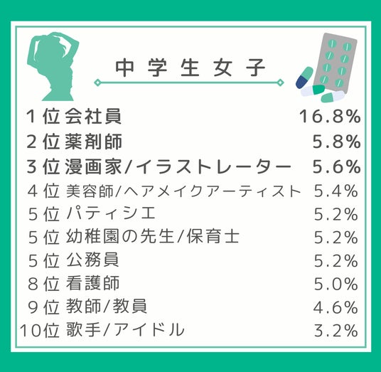 ◇小学生女子では「パティシエ」、小学生男子と中高生では「会社員」が6年連続で1位をキープ