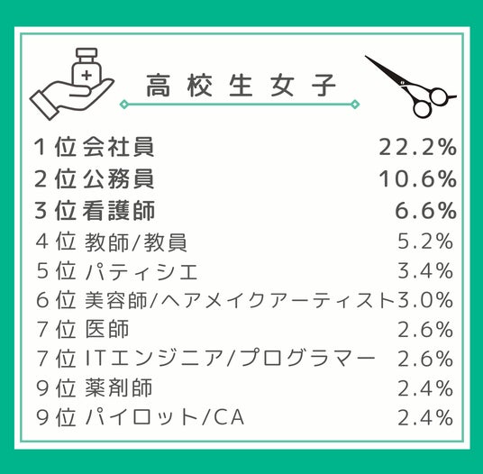 高校生女子では、医療・教育・美容など、専門性や資格を必要とする職業が引き続き支持されました。高校生男子で「投資家」「経営者/起業家」など”挑戦”や”自己実現”を重視する傾向がみえるなか、高校生女子は、人の役に立つことや長く働けることへの関心が高い傾向が対照的です。