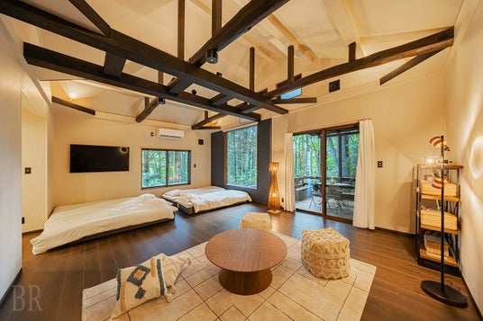 施設は森に囲まれた静かな環境に位置し、四季折々の自然美を間近に感じられるロケーションが魅力です。客室にはハンモックを設置しており、木々のざわめきや野鳥のさえずりに耳を傾けながら、ゆったりとした時間を満喫していただけます。夏の深緑、秋の紅葉など、季節ごとに異なる自然をお楽しみください。