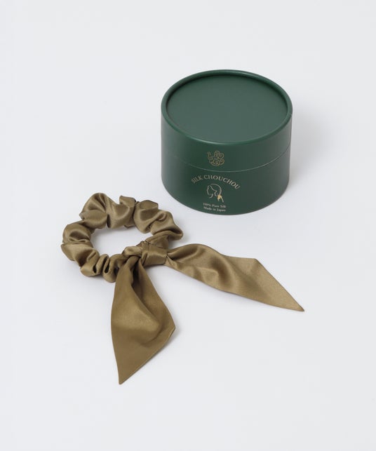 2. シルクリボンシュシュ 2WAYタイプ 三越ブロンズ最高等級のシルク生糸を100%使用し、髪にやさしく、結び跡が付きにくいのが特徴です。摩擦ダメージを軽減し、長時間の使用でも快適にお使いいただけます。
