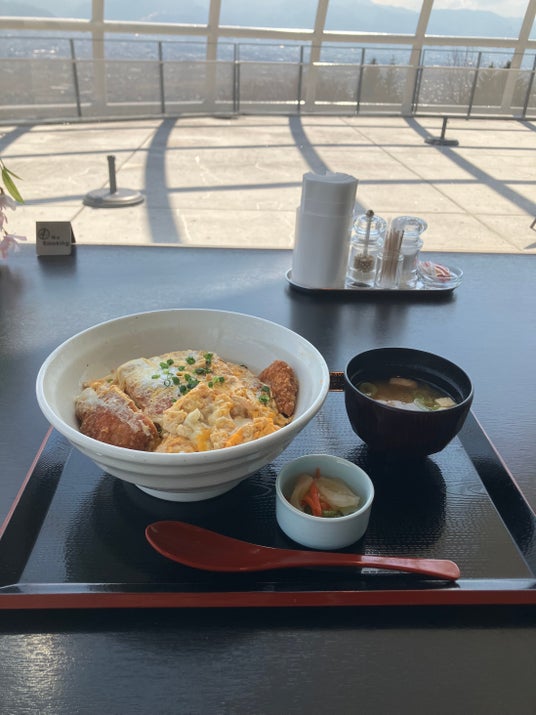 温泉で炊いたごはんと温泉卵のかつ丼
