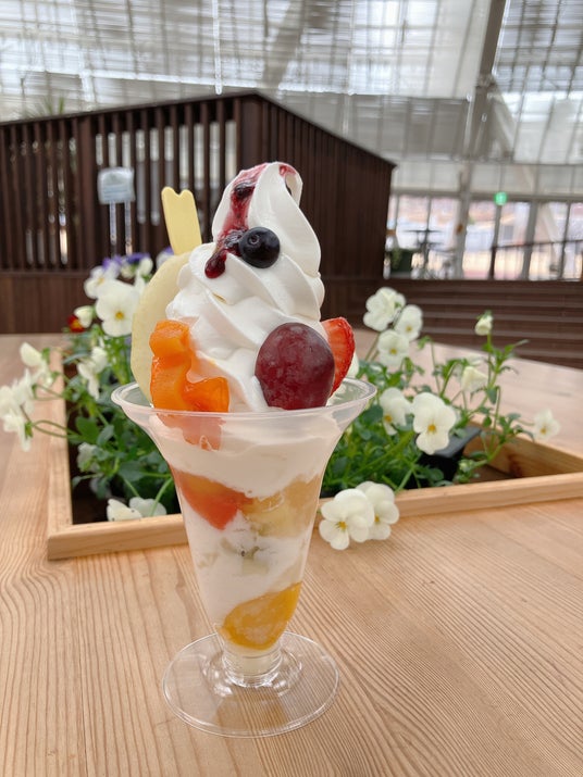 公園でたくさん遊んだ後は、旬のくだものを使ったパフェやデザート、山梨県産の食材を使ったメニューを園内のカフェやレストランにてお楽しみください。