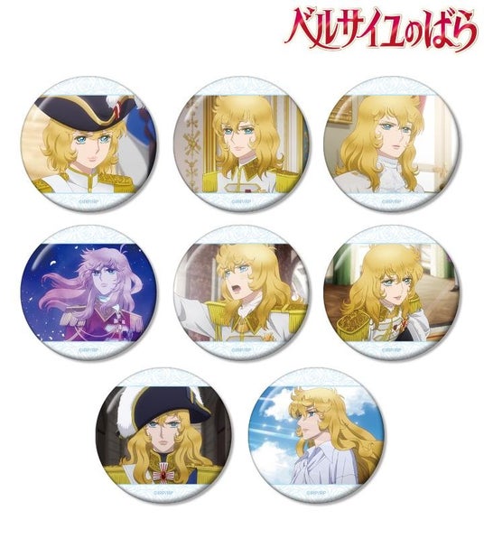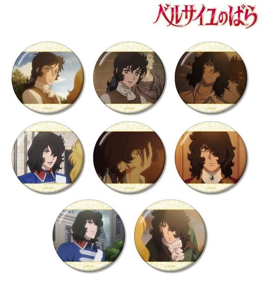 オスカル、マリー・アントワネット、アンドレ、フェルゼン、アラン、ジェローデルの印象的なシーンを缶バッジに仕上げました。