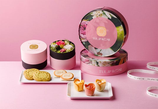 バターとチーズの香り溢れる美味しい花屋「TOKYO TULIP ROSE」。香ばしいチューリップの花びらラングドシャクッキーの中に、とろける生食感ショコラクリームのローズが咲いた代表作『チューリップローズ』は、累計5000万個販売を突破しました。