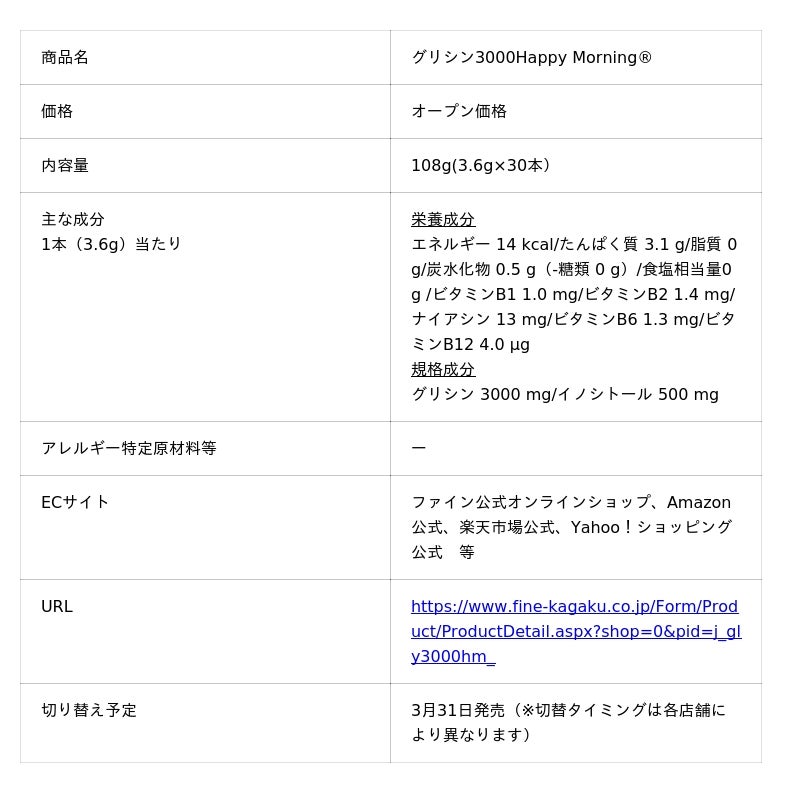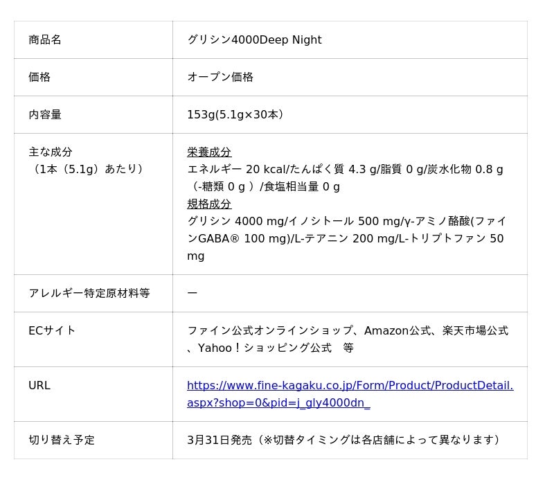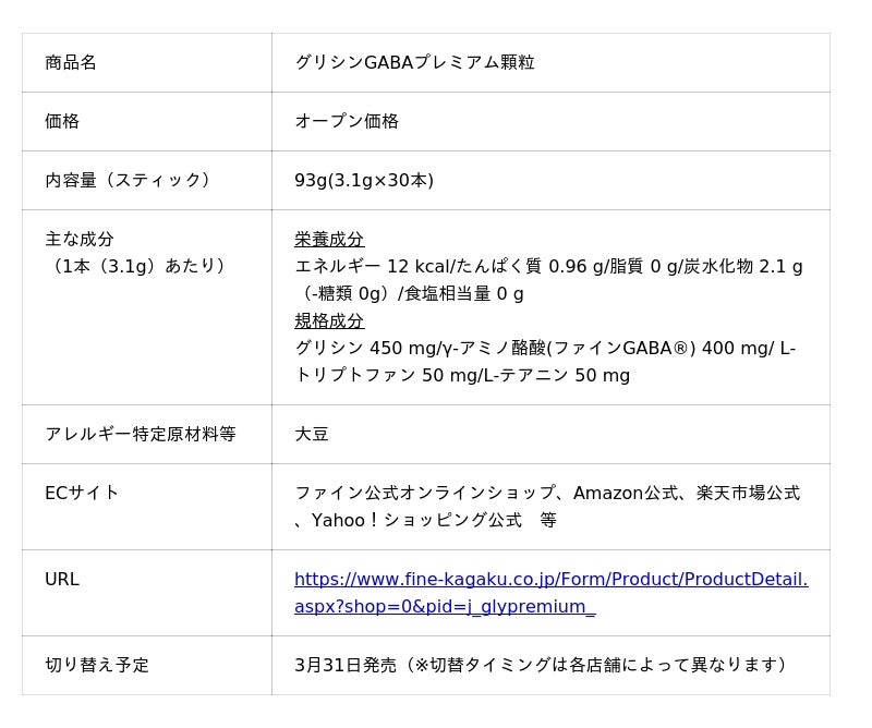 健康食品・サプリメントの製造・販売を行う株式会社ファイン(本社:大阪市、代表取締役:佐々木 信綱)は、主力ブランドである休息サポートサプリメントシリーズ「ファイングリシン(R)+」のリブランディングを実施いたします。