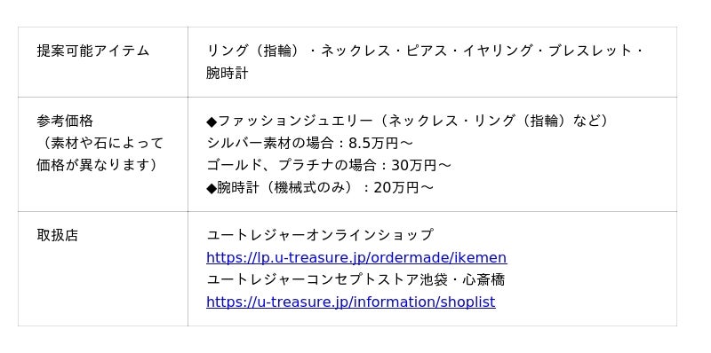 株式会社ユートレジャー(本社:東京都新宿区、代表取締役社長:青木 興一、株式会社ケイ・ウノの連結子会社)は、株式会社サイバード(本社:東京都品川区、代表取締役社長 兼 CEO 長嶋 貴之)の全世界でのシリーズ累計会員数4,500万人を誇る大人気恋愛ゲーム「イケメンシリーズ」の人気作『イケメンヴィラン 闇夜にひらく悪の恋』のジュエリーのオーダーメイドサービスを2026年3月26日(木)より開始します。ユートレジャーオンラインショップ、ユートレジャーコンセプトストア池袋・心斎橋にて取り扱います。