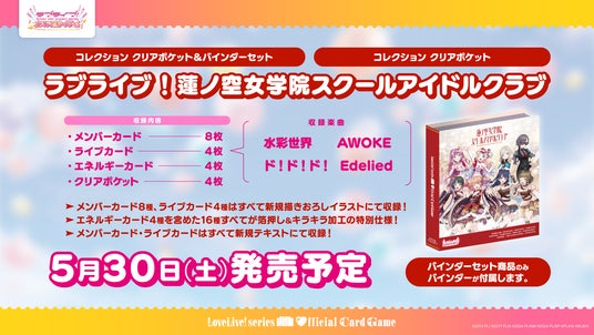 5月30日(土)に「コレクション クリアポケット&バインダーセット ラブライブ!蓮ノ空女学院スクールアイドルクラブ」「コレクション クリアポケット ラブライブ!蓮ノ空女学院スクールアイドルクラブ」が発売となります。