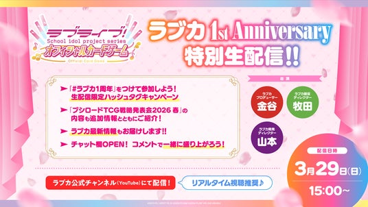 3月29日(日)15時より、ラブカ1周年記念して「ラブカ 1st Anniversary 特別生配信!!」をラブカ公式チャンネルにて配信いたします。