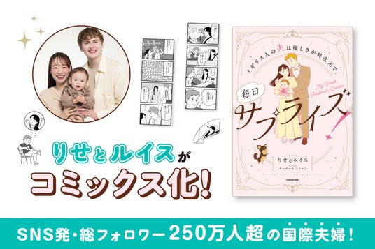 「りせとルイス」は、日本人のりせと、英国紳士すぎるルイスによる国際夫婦の日常を発信する人気コンテンツです。SNS上では、ルイスの紳士的で優しい言動や、夫婦・家族の日常に対する価値観が共感を集め、多くの支持を得ています。本書では、出会いから結婚、出産を経て現在に至るまでのエピソードをコミック形式で収録。思わず心が温かくなる日常の一コマや、文化の違いから生まれる気づきなどを、やわらかなタッチで描いています。