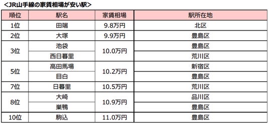 株式会社リクルート(本社:東京都千代田区、代表取締役社長:牛田 圭一、以下リクルート)が運営するニュースサイト『SUUMOジャーナル(スーモジャーナル)』は、住まいや暮らしに関するさまざまなテーマについて調査を実施し、結果をご紹介しています。今回は、都内主要エリアにある30駅を環状に結び、各方面へと向かう路線に接続するターミナル駅も多数抱えているJR山手線沿線に住むには、どれくらいの家賃が必要なのか調査しました。ひとり暮らし向け賃貸物件(10平米以上~40平米未満、ワンルーム・1K・1DK)の家賃相場ランキングを紹介します。最も安い家賃相場だったのは田端駅、最高額は有楽町駅でした。