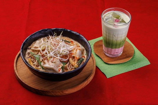しびれる辛さが特徴の定番マーラースープをベースにした、譚仔三哥流の担々麺。濃厚なごまの風味が広がるクリーミーなスープに、旨みたっぷりの肉味噌、もちもちな餃子、もやし、湯葉、ニラ、白ねぎを合わせました。仕上げに、青花椒油、自家製の紅油をアクセントに加え、しびれる辛さと香りが鼻に抜ける、奥行きのある味わいに。たっぷりの具材とスープをお好みの具合に混ぜながらお楽しみください。