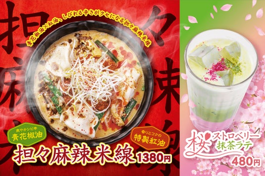 また、一足先に春を感じる、『桜ストロベリー抹茶ラテ』も同時販売しますので、 『担々麻辣米線』とともにお楽しみください。