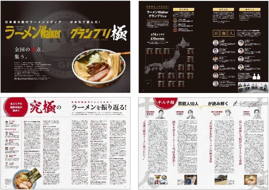 各エリアでラーメンWalker編集部が審査対象店(殿堂店を除く)を実食調査し、「スープ」「麺」「具材」「完成度」「創造性」「ホスピタリティ」などの観点で詳細に評価。その後、全国のラーメン事情に精通した「百麺人」との厳正な協議を行い、〈金賞〉〈銀賞〉〈銅賞〉のラーメン店を決定し表彰します。【概要】『ラーメンWalkerグランプリ 極 2025-2026』ラーメンウォーカームック