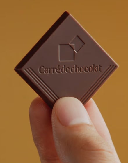 カレ・ド・ショコラの「四角」は、チョコレートの香り口どけ、味わいをひと口で存分に楽しめる形。程よい厚みは軽やかな食感を、側面のわずかな傾斜は口あたりの良さを生みだしています。