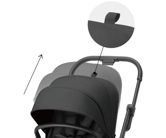 ビッグサンシェード引っ張ると片手で高さを調節できるベルトを新たに搭載しました。