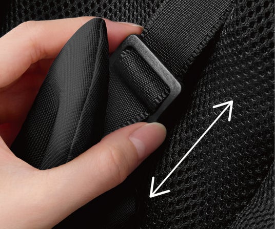 ウォッシャブルインナークッション肩ベルトの通し穴をスリット式の新形状にしたことで取り外しのしやすさを向上。洗濯機で洗えるので、いつでも清潔に保つことができます。