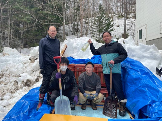 2026年は1月27日に休暇村の敷地内に日本酒を埋蔵しました。いよいよ4月3日(金)に掘り出しを行います。雪の中で熟成された日本酒は、ゴールデンウィークころに休暇村にて販売予定です。